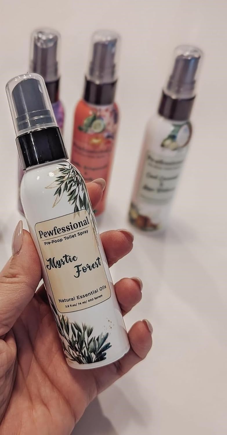 - JUST IMAGINE: With just five sprays, you can eliminate even the strongest toilet odors. Pewfessional Pre Poop Toilet Spray comes in beautifully artistically inspired bottles and features enchanting natural scents